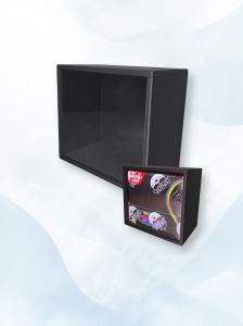Przezroczysty Front: Przedni panel wykonany z wysokiej jakości pleksi (akrylu) wsuwa się płynnie w wewnętrzne szyny od góry. Zapewnia to nieskazitelny widok na grafikę Booster Boxa, chroniąc ją jednocześnie przed kurzem i zarysowaniami.